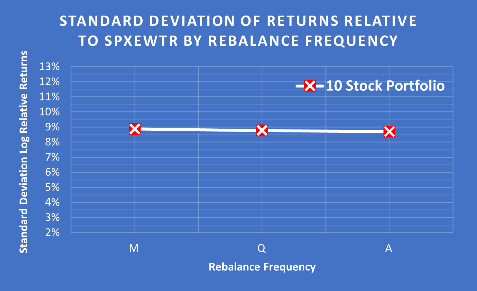 Rebalance frequency (excluding trading costs) doesn’t impact the Standard Deviation of excess returns.