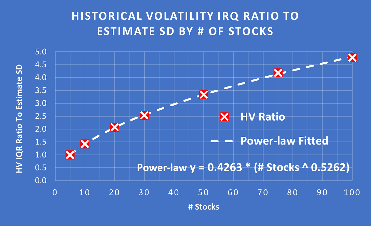 (Above) The required ratio = 0.4263 * (# Stocks ^ 0.5262)